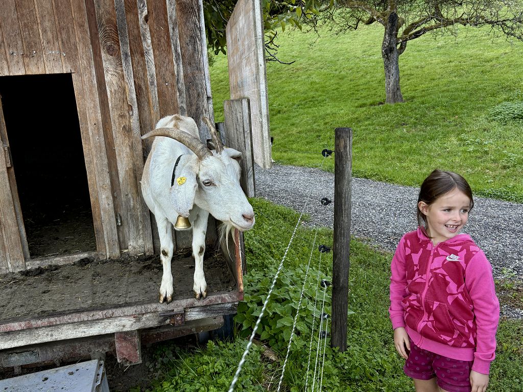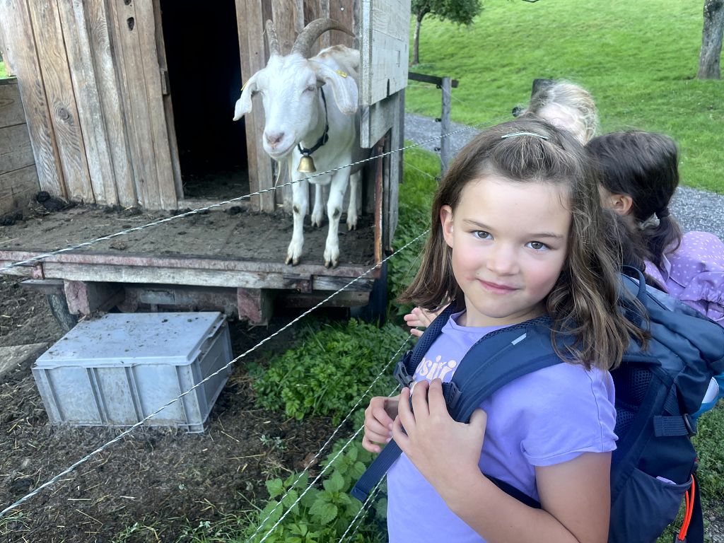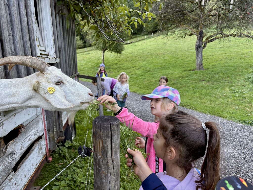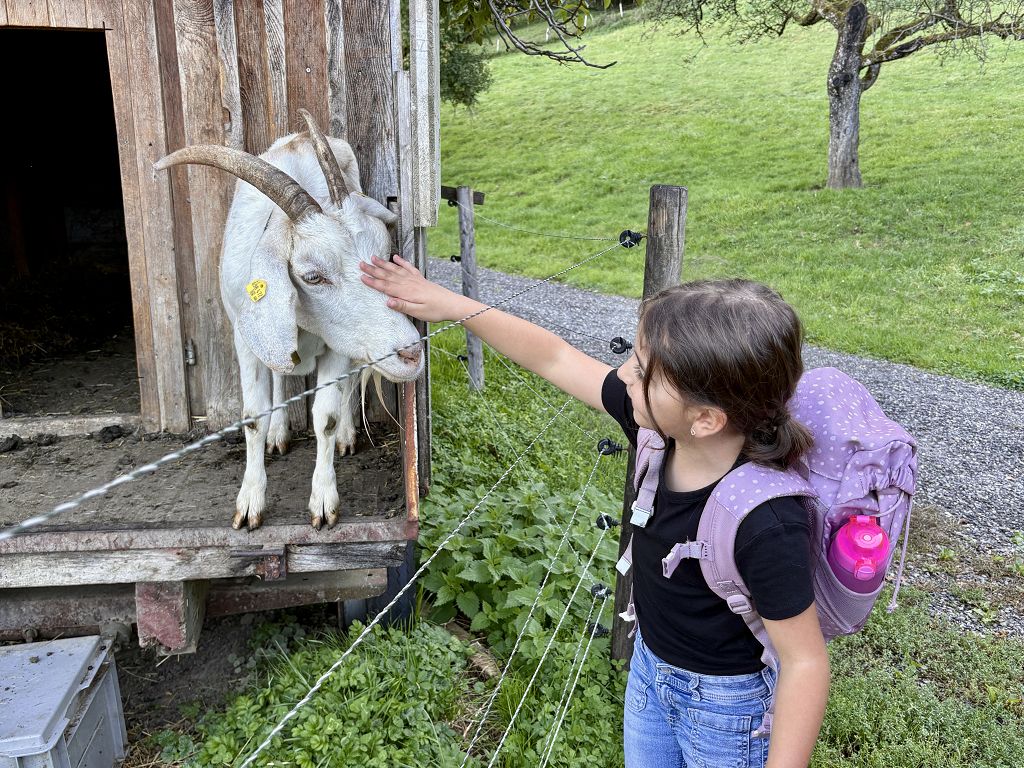 Besonders begeistert waren die Kinder, als wir kleine Holzhütten entdeckten - sie wurden sofort in Beschlag genommen und zu kleinen "Geheimverstecken" erklärt. Ein weiteres Highlight waren die Ziegen, die wir streicheln durften. Viele Kinder hatten große Freude daran, die Tiere aus nächster Nähe zu erleben und dabei ihre Zutraulichkeit zu spüren.
