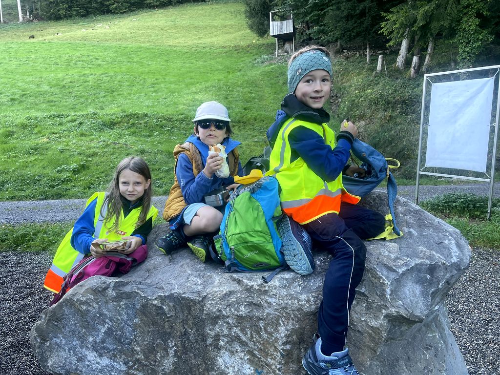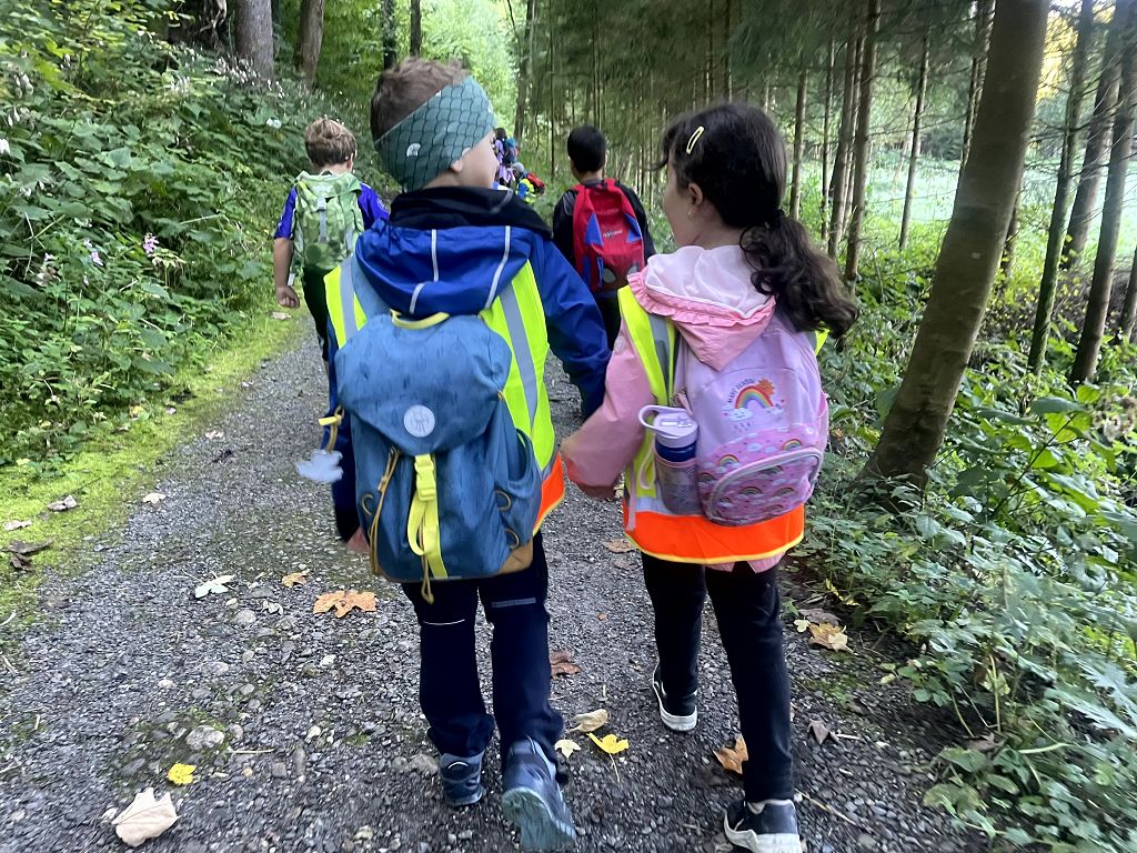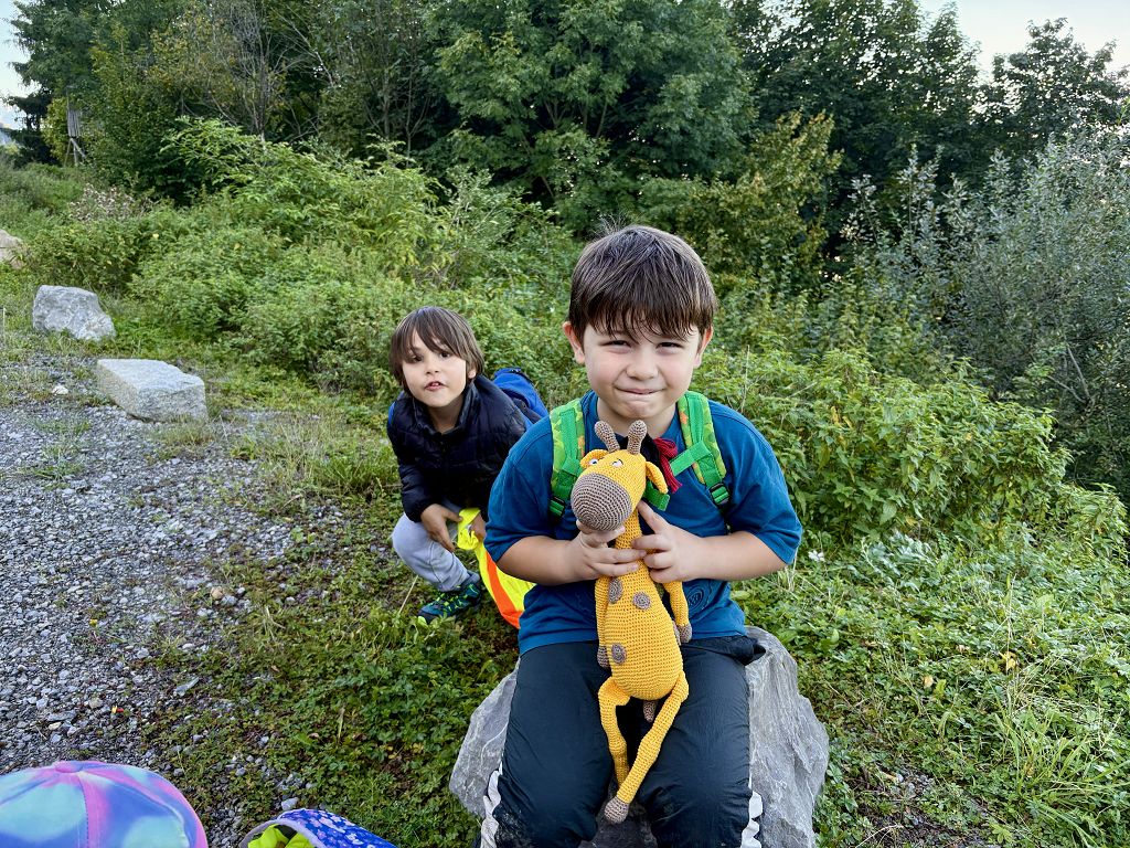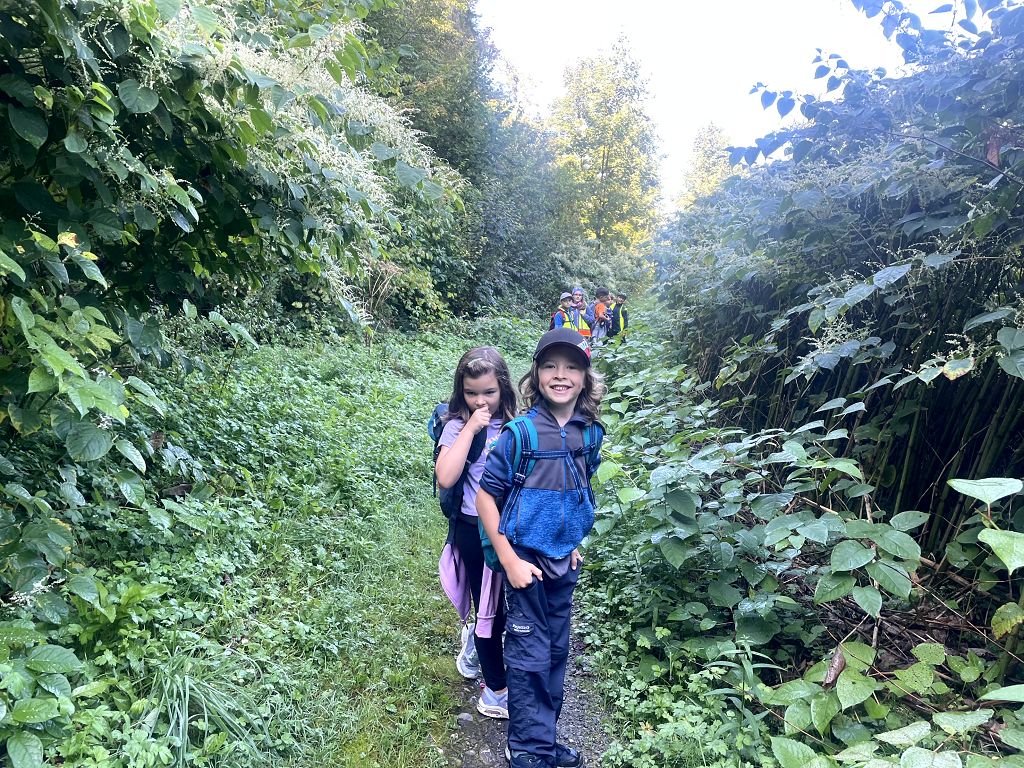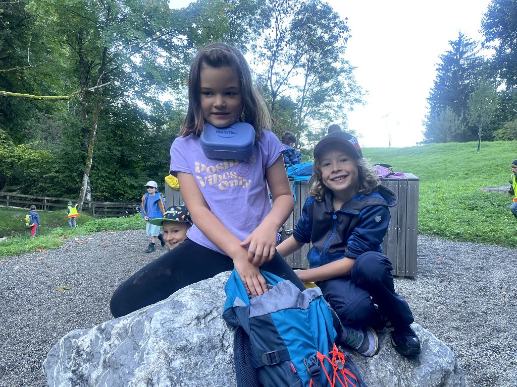 Unser Wandertag war ein voller Erfolg. Gemeinsam machten wir uns gut gelaunt auf den Weg. Unterwegs gab es viel zu entdecken und zu erleben. Kleine "Schätze" wie Steine, Stöcke und Blätter wurden mit leuchtenden Augen gesammelt und stolz den ganzen Weg mitgetragen.
