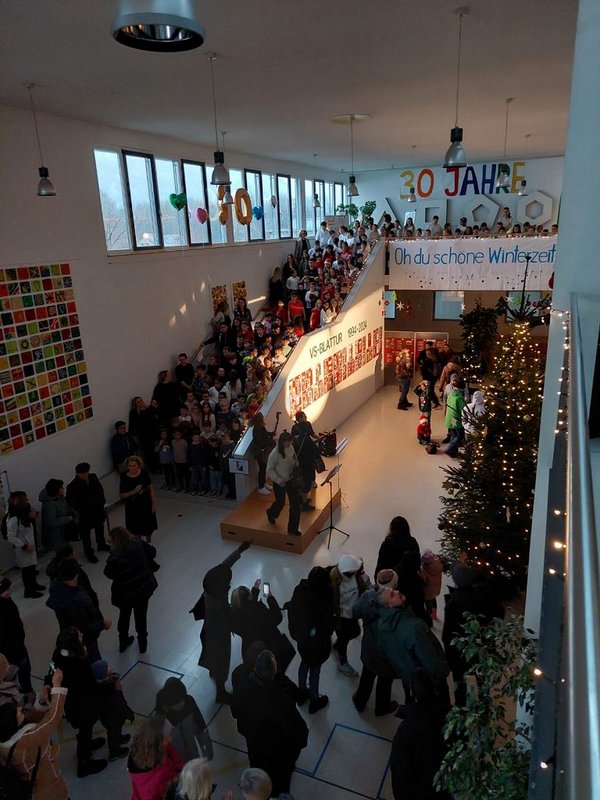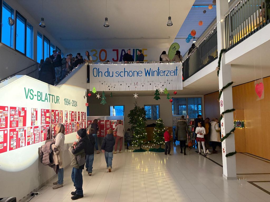 Zu unserem 30-jährigen Jubiläum luden wir zu einem Adventmarkt. In allen Klassen wurden Basteleien und Köstlichkeiten verkauft. Der Turnsaal war zu einem Veranstaltungssaal umfunktioniert worden und die Darbietungen der einzelnen Klassen wurden mit lautem Applaus bedacht. Auf dem Schulplatz war für das leibliche Wohl und gemütliches Beisammensein gesorgt. Direktorin Sonja Stern führte durch den Nachmittag und begab sich gemeinsam mit den zahlreichen Besuchern auf eine Zeitreise durch die letzten 30 Jahre.